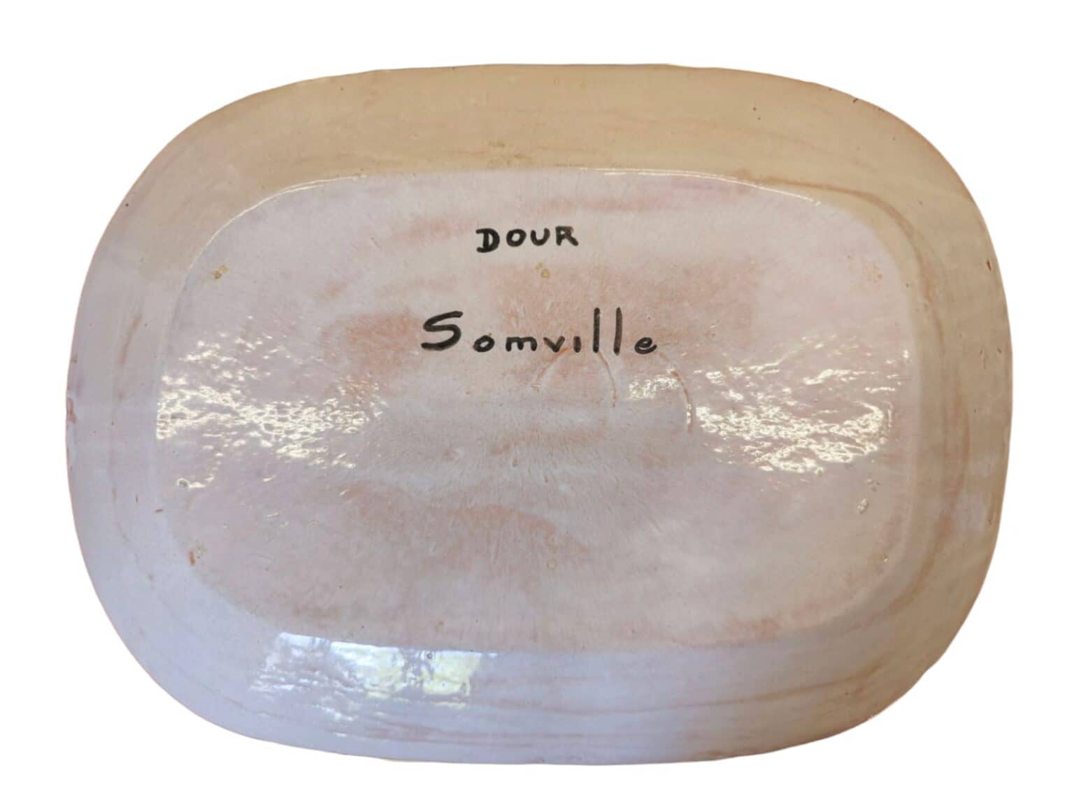 The Dour ceramics workshop was founded after the Second World War under the impetus of Georges Boulmant and Zéphir Busine, with the support of the Douro brewer and patron Émile Cavenaile. In 1951, Roger Somville took over as director and defined a clear artistic line: " Aesthetic spirit: creating and using simple shapes. Decoration: drawing inspiration from human life, work, struggles, fauna, flora, etc. Fold and inscribe the decoration into the shape of the object to be decorated to create a complete unity between shape and decoration. We frankly directed our work in the direction of legible and fairly realistic art."