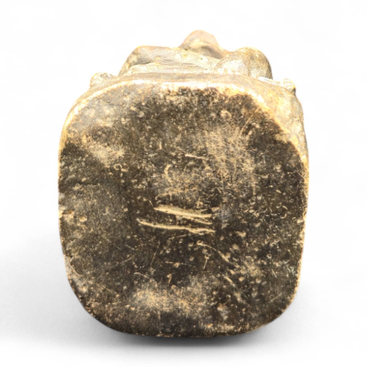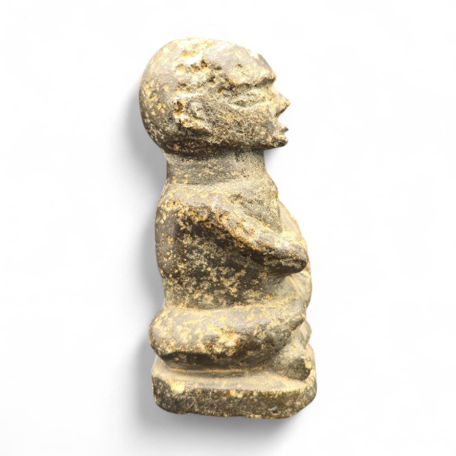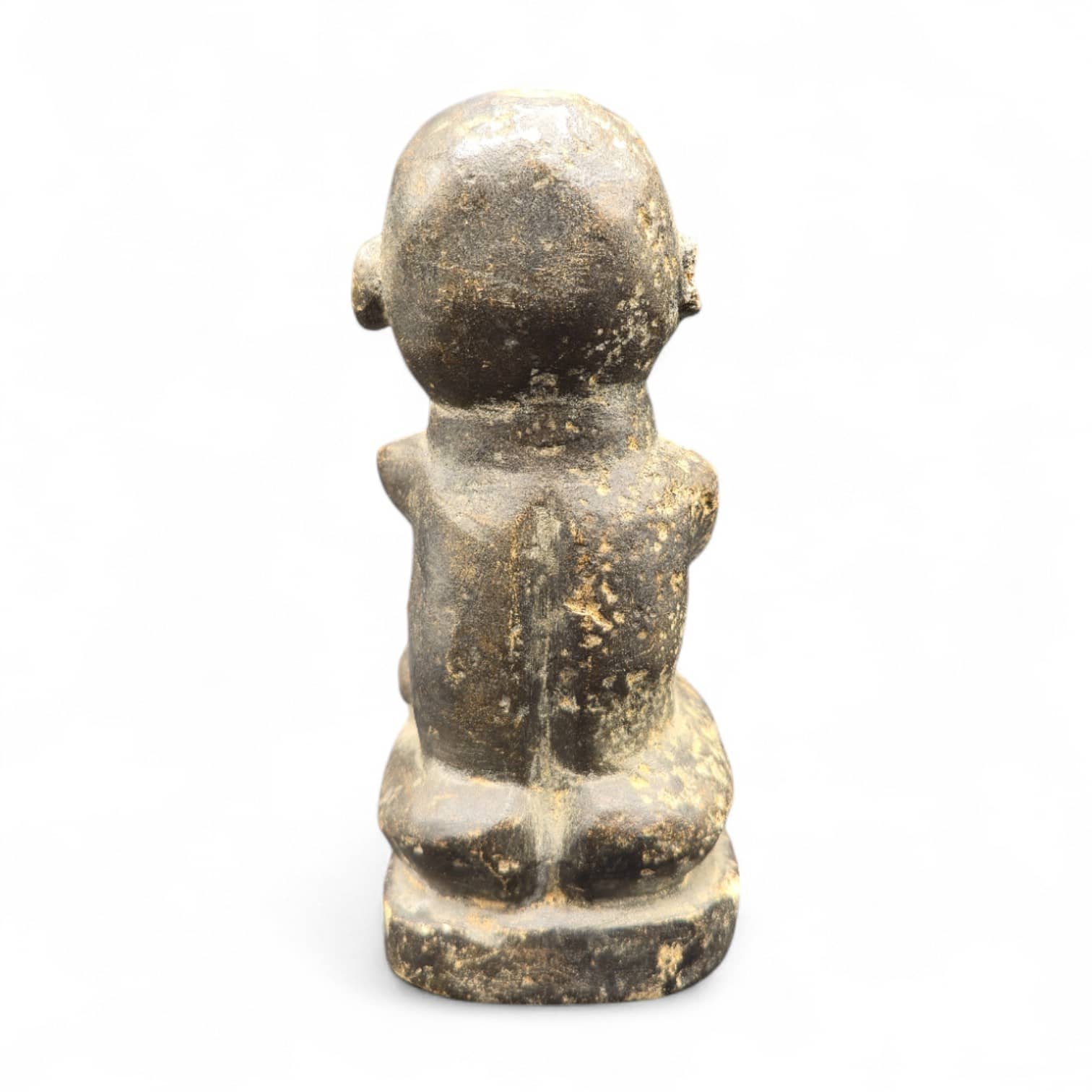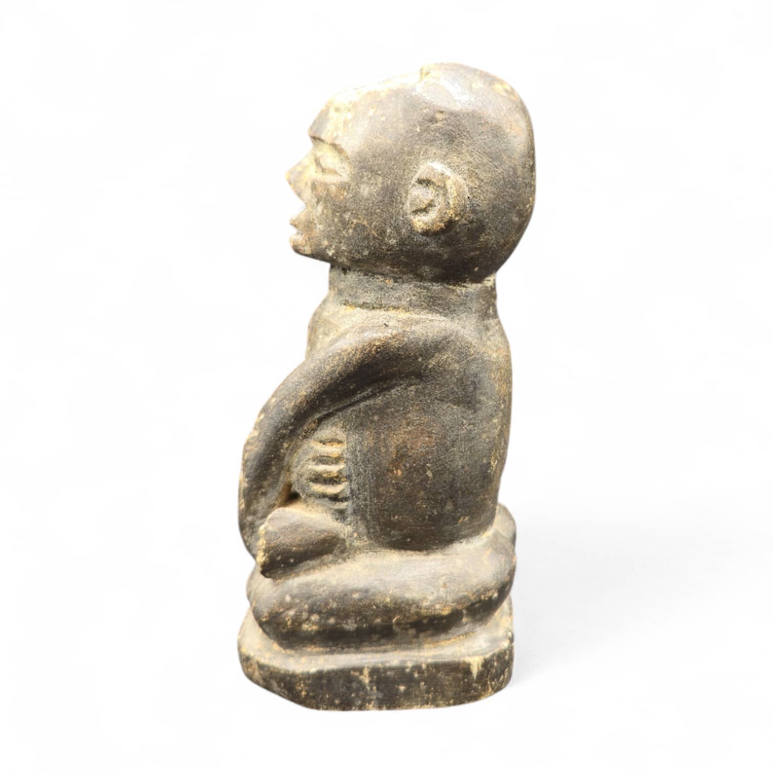 République Démocratique du Congo – Figurine Kongo/Bakongo, ntadi , figurine masculine assis, pierre taillée, 19e-20e siècle, 19 x 8 cm