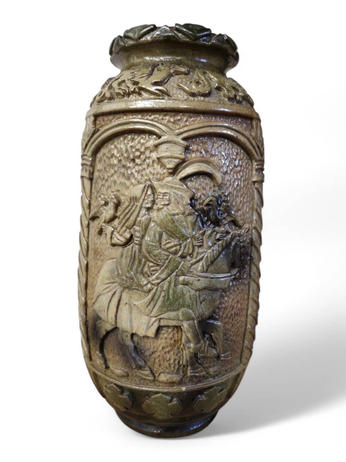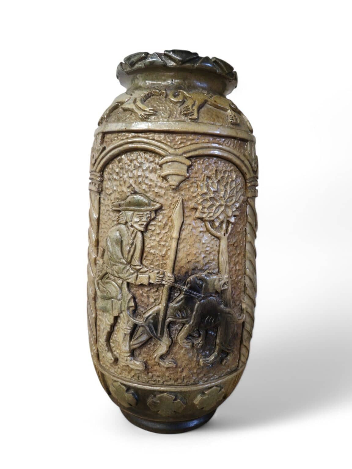 Roger Guérin (1896-1954), Vase à décor de scène médiévale, grès, 20e siècle, 47 x 22 cm, Signé Guérin, unique, n° X1