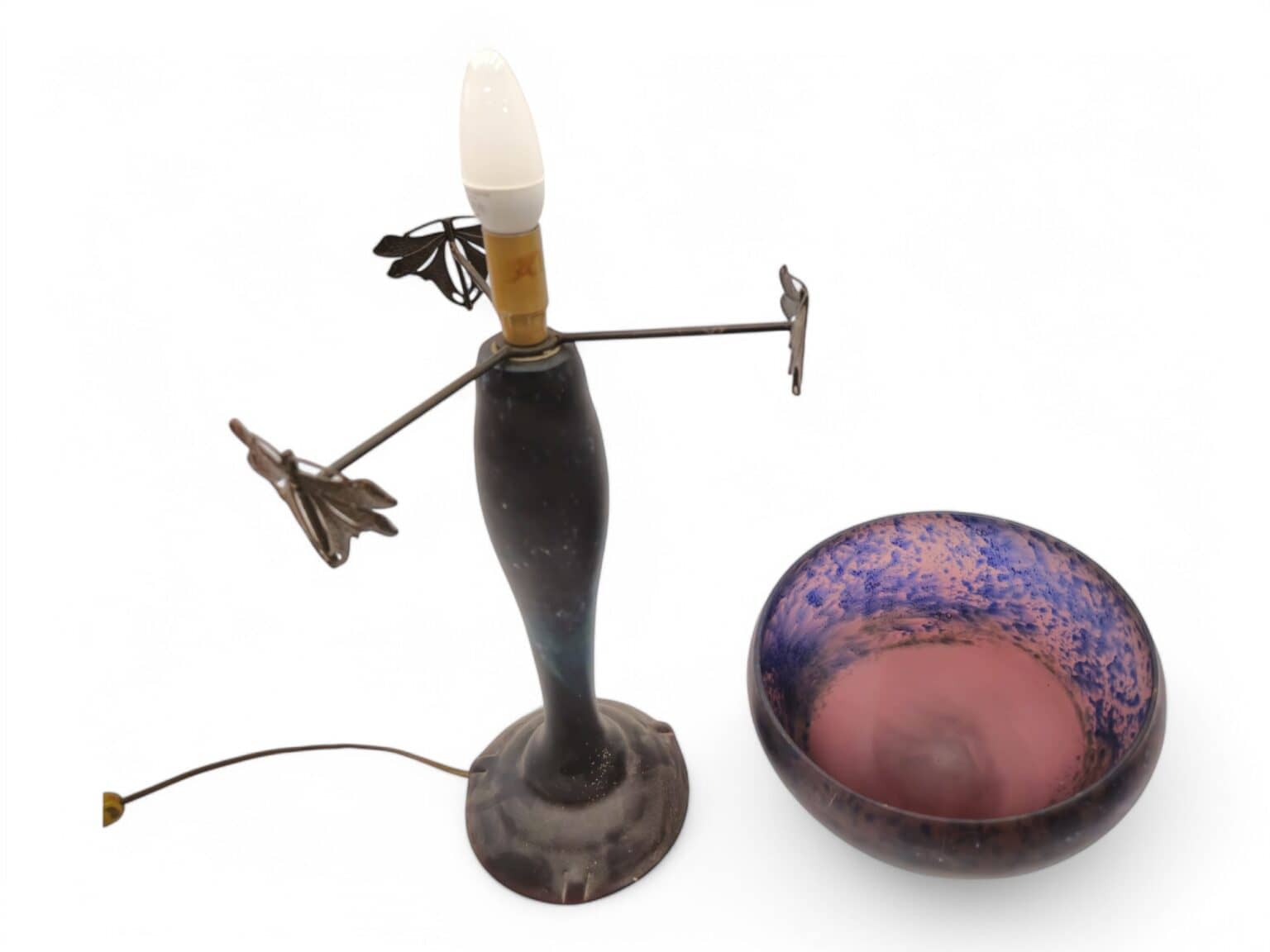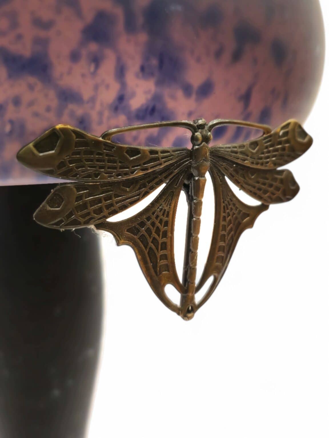 violette paddestoel lamp met libelle decoratie, metaal, glas, 57 x 28 cm