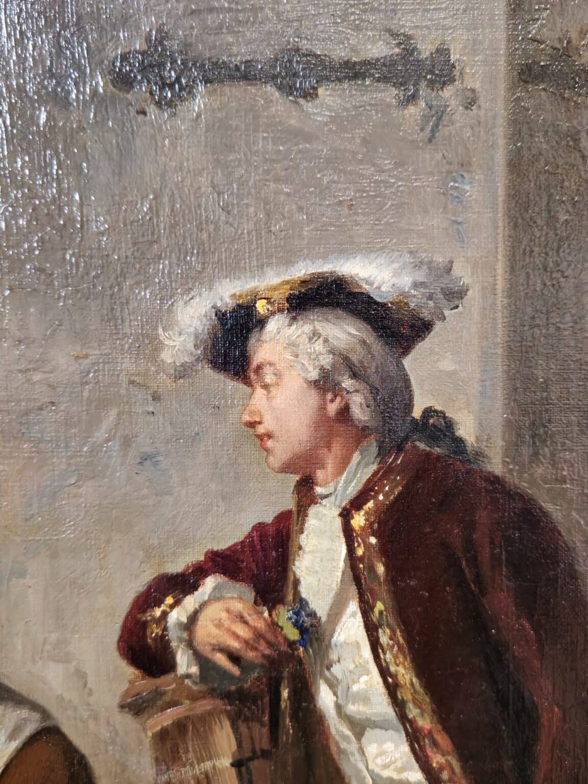 156. Victor Gabriel Gilbert (Attribué) – Scène de galanterie : Homme courtisant une dame