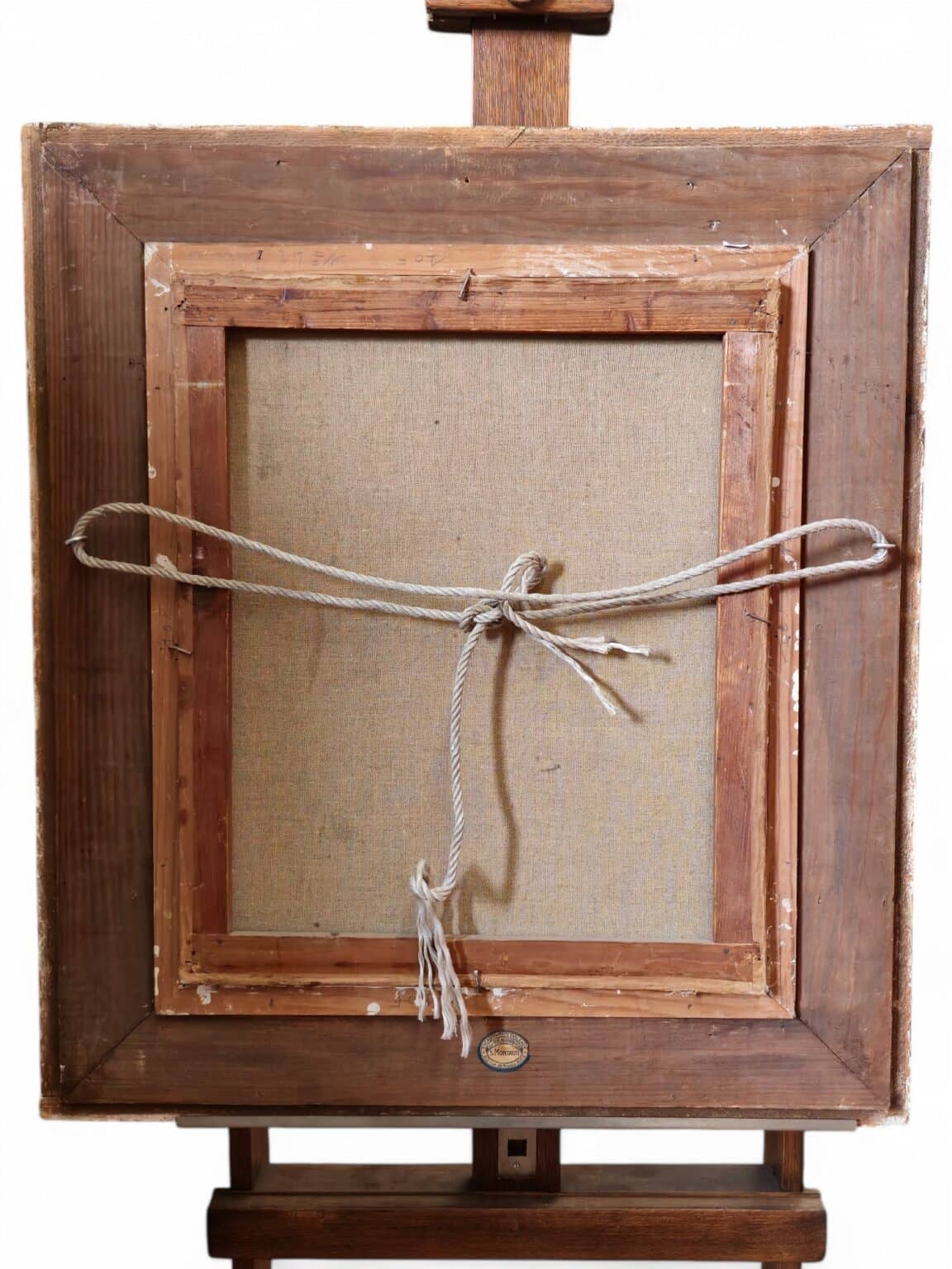 Atrribué à Victor Gabriel Gilbert, 1847-1933, Scène de galanterie : Homme courtisant une dame occupée à travailler avec des fleurs, huile sur toile, 46 x 55cm, avec cadre : 71 x 80 cm