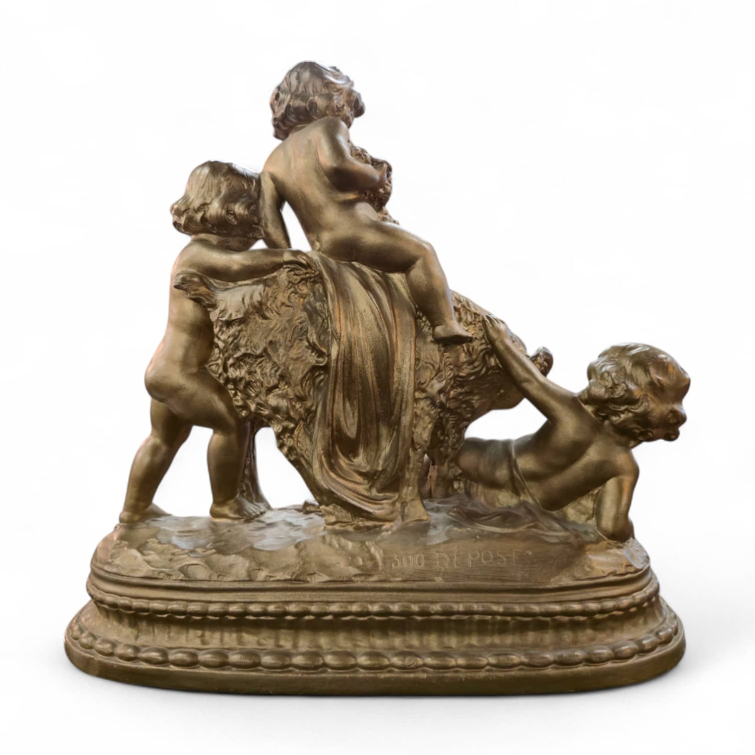 Groupe en plâtre doré, Putti et bouc 44 x 47 x 17 cm