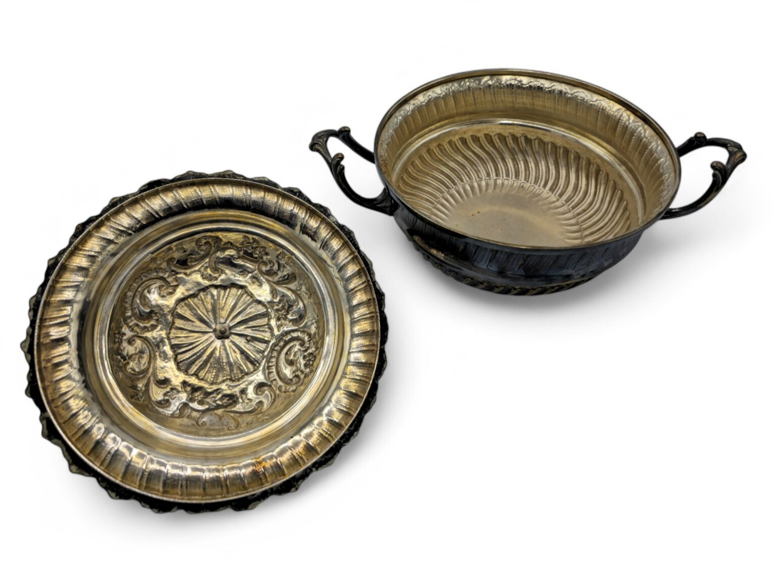 Anoniem, Paar groenteschalen, verzilverd metaal, 29 x 15 cm