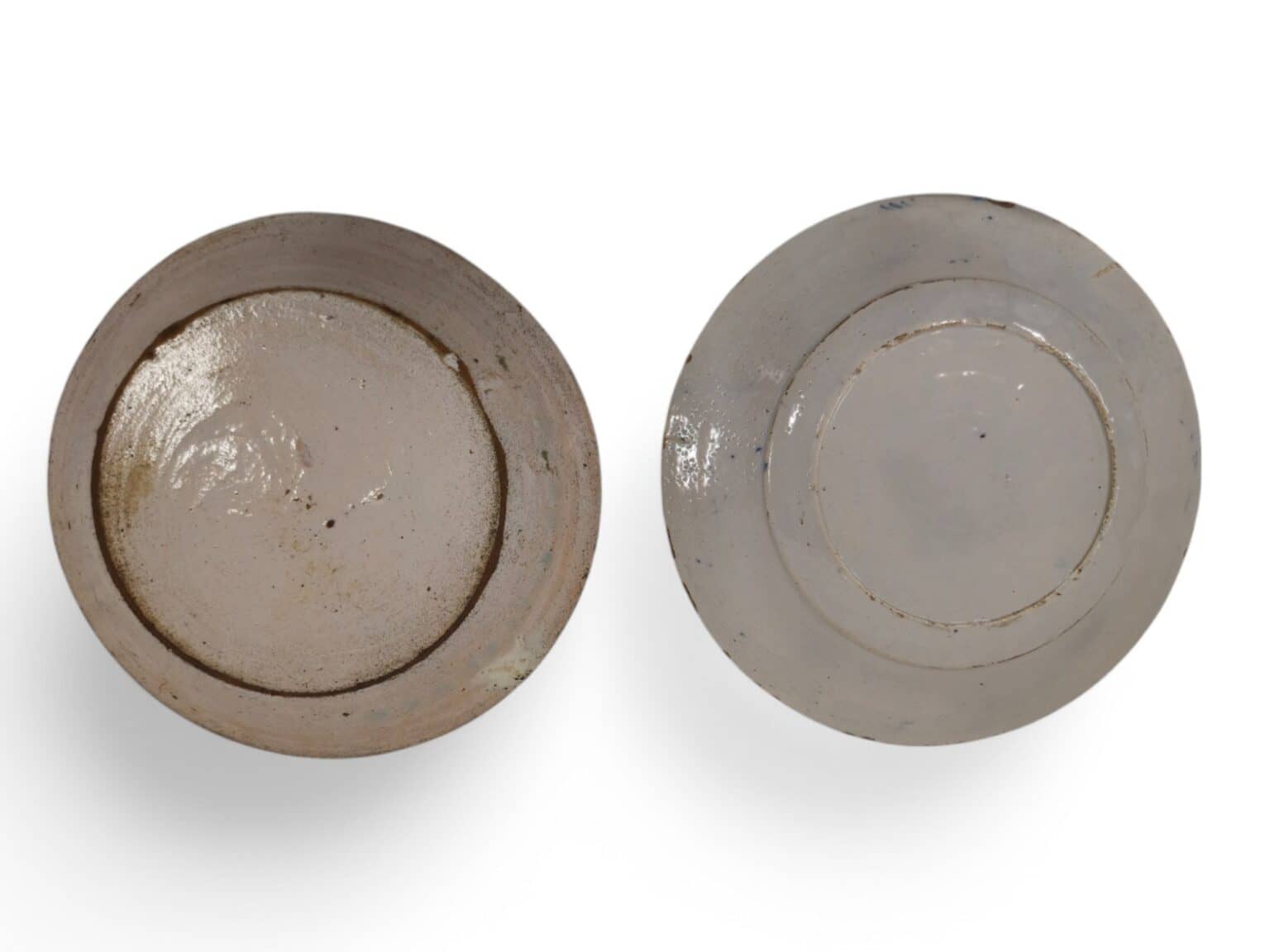 Franse school - Set van twee borden met haan en plant decoraties - aardewerk - 18e eeuw